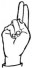 На ћирилици написано КОСТАДИН БОЖИЋ састоји се из 13 слова [?]. Исписано ћириличном једноручном азбуком за глувонеме: